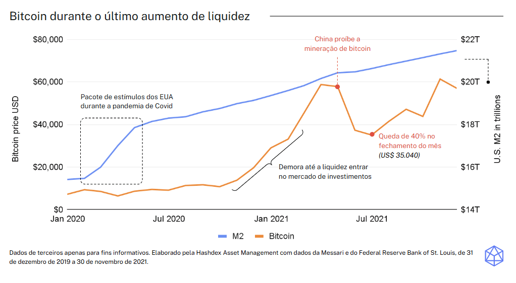 A história mostra que, quando a liquidez aumenta, cripto costuma reagir de forma expressiva, mesmo quando o sentimento é fraco ou quando o setor enfrenta problemas. Em ciclos anteriores, como ilustrado em nosso gráfico cobrindo preços de 2020 a 2022, cripto se recuperou das quedas e avançou para novos recordes históricos conforme a liquidez entrava no sistema.