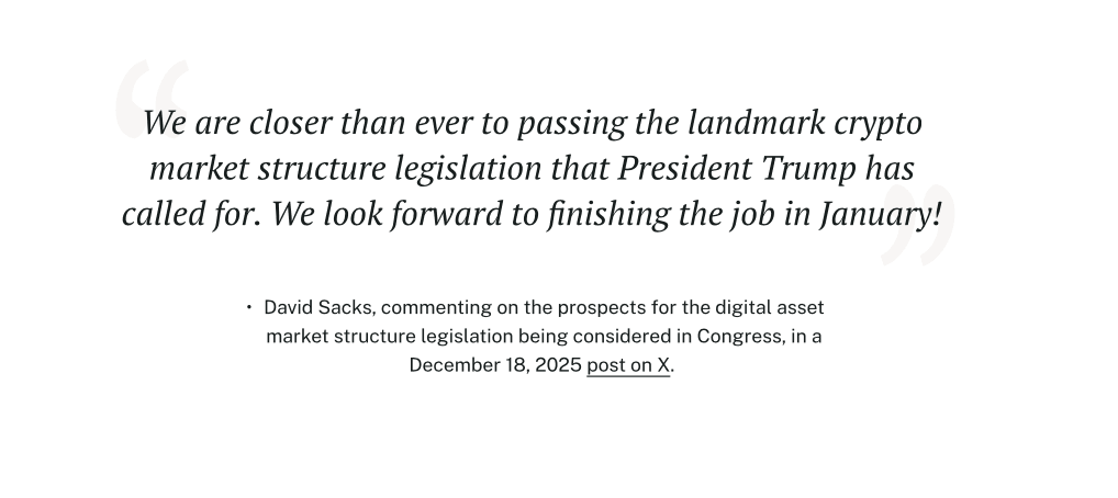 Regulatory Evolution: Zero SEC enforcement actions in 2025 represents a dramatic shift from prior years. With Paul Atkins leading the SEC through 2026, the regulatory environment favors continued innovation and institutional adoption.